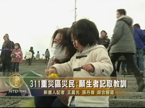 【新唐人2012年3月11日訊】日本人民衆在311災難面前表現出的鎮靜,自律和忍耐至今仍讓人印象深刻,在311發生一週年的此刻,日本宮城、岩手、福島三大災區分別舉行了大小追悼儀式,願死者靈魂都能夠安息,生者能夠從災難中汲取教訓。。
