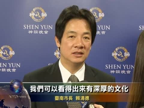 【新唐人2012年3月11日訊】3月10號,美國神韻紐約藝術團在台灣古都府城的演出,迎來了貴賓,臺南的大家長市長賴清德,賴市長在觀賞演出後說:神韻內涵深厚的文化與精彩的藝術,讓他驚嘆不已。