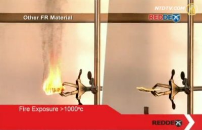 台灣工研院副院長劉仲明:高溫有火的場合,無機的粉體形成一個多孔結構的材料,因此對火勢有很好的防護和阻擋的作用。