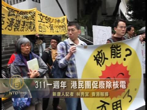 【新唐人2012年3月12日訊】星期日是日本311大海嘯及核災一週年,香港民間團體舉行反核集會遊行,和全球各地民眾同步呼籲廢除核電。他們要求立即關閉大亞灣和其他核電廠,以保護下一代的安全。