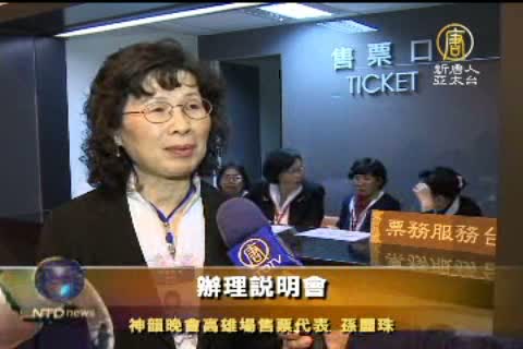 神韻晚會高雄場售票代表 孫麗珠:「今年我們首場銷售一空,目前高雄場票房高達9成8,非常感謝觀眾支持。」