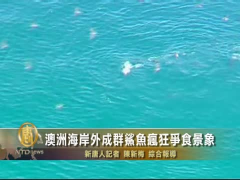 【新唐人2012年3月12日訊】下面我們來看一組令人驚奇的鏡頭,一架海上救援直升飛機在澳大利亞珀斯(Perth)以北幾百米的海面上,拍攝到一群鯊魚瘋狂爭食的景象。
