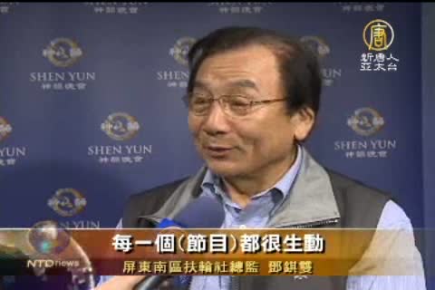 【新唐人亞太台2012年3月15日訊】屏東南區扶輪社年度總監鄧錤雙,3月13日晚間,在高雄文化中心觀賞美國神韻紐約藝術團的演出,他說:從大幕開啟,就讓他感到非常的震撼。神韻藝術團每年帶來全新的演出節目,讓已經看過神韻的觀眾們充滿期待。