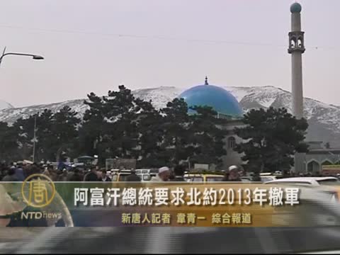 【新唐人2012年3月16日訊】繼一名美軍士兵在阿富汗槍殺16名平民之後,阿富汗總統卡爾扎伊週四表示,他與美國國防部長帕內塔已經同意在2013年進行安全移交,比北約計劃撤出阿富汗的最後期限提前了一年。卡爾扎伊還呼籲北約軍隊從阿富汗鄉村撤退。