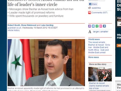 在《衛報》披露的3000多份私人電子郵件中,阿薩德就如何鎮壓反對派,曾多次聽取伊朗的建議,包括演說措辭、內容,以及故意泄露軍事資料向外界顯示軍事力量等。在一些郵件中,阿薩德把自己許諾的改革完全不當回事,稱其為關於政黨、媒體、選舉的垃圾法律。