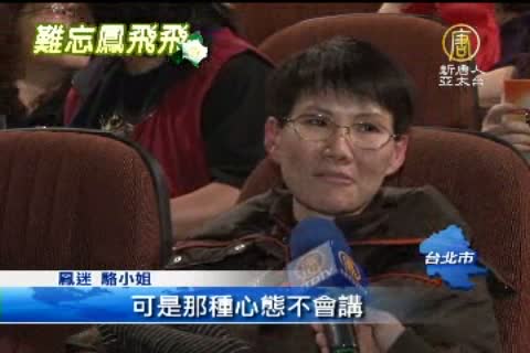 【新唐人亞太台2012年3月16日訊】鳳飛飛32年前與鍾鎮濤主演的《就是溜溜的她》,以數位修復版重新上映,9日起在台北一家影城上映兩週,有百位鳳迷特別揪團,一起看電影,有些鳳迷儘管行動不便,仍然堅持到場,不想錯過能看到鳳飛飛的機會。