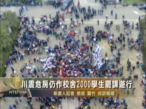 【新唐人2012年3月17日訊】從2008年四川大地震以來,災區德陽市第二中學高中部一直在危房中上課,近期要搬遷的新校舍卻面臨被收回。日前德陽二中兩千多學生衝出校門,罷課遊行,圍堵市政府請願。有關市領導出面勸阻,承諾會讓學生遷往其他校舍。
