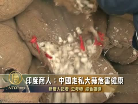 【新唐人2012年3月17日訊】中國大蒜通過尼泊爾邊境走私進入印度,已經危害到當地市場。印度商人表示,近期一批來自中國的走私大蒜被檢驗出遭到細菌感染,危害到當地人的健康,他們呼籲政府採取措施,制止中國走私大蒜的不良行為。