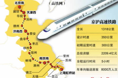 京滬高鐵工程初步設計概算為2千1百76億元,全長1318公里,沿途經過4省3市24個車站。近日審計報告還指出,有個別工程管理不到位,例如北京段李營變電站電纜工程只有一路電源供電,不符合電氣化鐵路牽引變電站應由兩路電源供電的規定。
