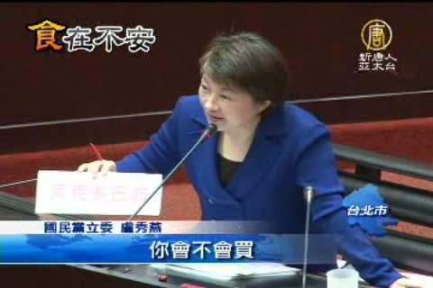 【新唐人亞太台2012年3月20日訊】美牛瘦肉精風波持續,立委今天質詢時,拿出瘦肉精英文單字考官員,批評政院的「強制標示」政策根本行不通。行政院長 陳冲表示,會繼續努力,他甚至強調,會與美牛政策共進退。