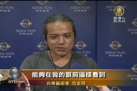 台東藝術家 范志明:「把五千年文化裡面最精髓的那樣子的舞蹈的動作的那種姿態,能夠在我的眼前這樣看到,說實在是一種...我講得起雞皮疙瘩,就是怎麼形容那樣感 覺?很感動!能夠來台灣,在台灣這樣做一個完美的呈現,算是很有福氣能夠看到這樣的畫面」