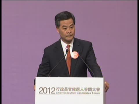 在特首候選人答問大會上,梁振英再次否認說過出動防暴隊和建議縮短商臺牌照年期,並聲稱自己不是共產黨員。唐英年趁答問環節反擊。