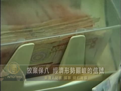 七年來首度放棄保八,雖然當局強調這是從「保增長」轉型到「穩增長」,不過國際上卻認為,這是中國經濟減速的強烈訊號。