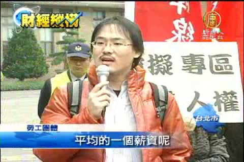 【新唐人亞太台2012年3月22日訊】行政院拋出自由經濟示範區的構想,為本外勞薪資脫鉤鋪路,不過21日馬總統明白表示支持勞委會立場,因此爆發府院不同調的說法,今天(22日)不只立委站出來痛批行政院長陳冲,還有勞工團體直接到行政院抗議,認為勞工的權益將嚴重被剝奪。