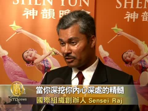 國際組織的創辦人Sensei Raj先生:「娛樂性只是表面的,在你心靈深處,當你放鬆下來,放掉所有雜念,當你深挖你內心深處的精髓,跟隨神韻演出的關鍵內涵,你就會感受到,你失落的是甚麼,你的生活,這個社會,這個世界缺少的是甚麼。」