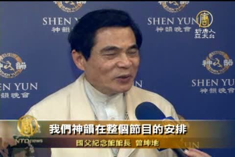 【新唐人亞太台2012年3月25日訊】來看到神韻藝術團演出的最新消息。美國神韻紐約藝術團連續三年在台北國父紀念館演出,3月23日晚間,國父紀念館館長曾坤地觀賞了神韻晚會,他說,接任館長以來,忙於公務,直到今年才真正看到神韻,他對於神韻發揚正統中華文化的精神非常支持,也希望未來神韻到台北,能繼續在國父紀念館與台北的觀眾見面。