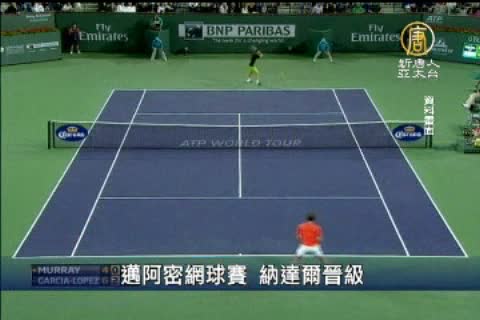 【新唐人亞太台2012年3月26日訊】邁阿密網球賽25號進入男單2輪、女單3輪賽事,男單球王喬科維奇、納達爾、費德勒都成功晉級,女單冠軍大熱門之一克利絲特絲則是爆冷遭到淘汰。