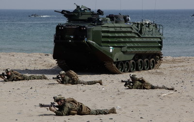 美國海軍陸戰隊中尉謝爾曼(Michael Sherman):“我們把統合美韓雙方海軍與陸戰隊,提高美韓兩軍協同作戰能力,視為這次兩棲聯合登陸演習的重點。”