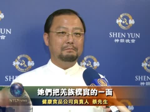 健康食品公司負責人蔡先生:「我覺得我們每一位中華民族的人們,如果有一天能夠看到神韻演出,這個機會是非常難得,這是我今天所感覺到的,是良機 。如果要我用幾句話形容神韻,我會覺得[英文]不可思議的,美好的 ,神韻無限寬廣,甚麼都可以(容納),不管在政治上學術上,中華文化確實是很偉大的。」