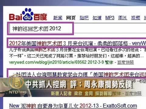 【新唐人2012年3月31日訊】31號,中共喉舌發文要民眾不為「北京出事」等,最近網上的傳聞謠言所惑。並且已對新浪和騰訊微博做出懲處、抓捕網民。有分析評論認為,不排除是周永康積極運作脅迫,通過李長春來消除對自己不利的資訊,作反撲。