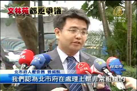 【新唐人亞太台2012年3月31日訊】新聞一開始,帶您先來關心。文林苑強拆爭議越滾越大,現在連自家人都不挺,3位台北市府人權委員會委員就憤而請辭,郝龍斌的臉書更是被民眾灌爆要求他下台,讓台北市府似乎扛不住壓力,緊急宣布,將暫緩代拆都更案,不過依然是無法平息爭議。