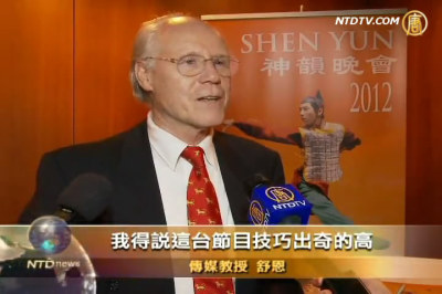 銀行金融顧問 威琉斯教授:「演出令我很感動,我覺得這是一個非常棒的表演。尤其是很多人的集體舞蹈成功的展示了優雅和完美。我很感動。真的非常美。我想你從中可以看到中國文化的博大精深,因為能把韻律、色彩以及優雅,甚至西方式的優雅,融合成一個整體。」