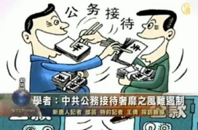 【新唐人2012年4月2日訊】近日,大陸學者朱光明指出,中共一些領導70%的時間都花在酒桌上。中國政法大學法治政府研究院副院長王敬波指出,制度的約束形同虛設,難以遏制公務接待奢靡攀比之風,於是形成中共官員講排場、吃喝成風的官場文化。