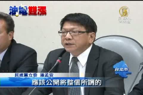 民進黨立委 潘孟安:「應該公開將整個A錢的浮動油價機制,整個要透明,甚至如果在短期裡面不透明的話,民進黨黨團不排除罷審中油的預算。」