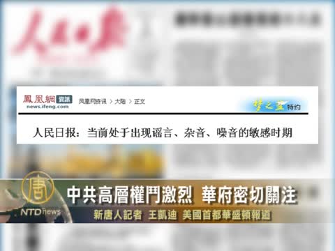 中共官方喉舌《人民日報》近幾天連續在頭版刊發評論員文章,強調當前中國社會正處在出現一些「謠言、雜音、噪音的敏感時期」,要求各方與「黨中央」保持一致。外界認為,社論凸顯出,由王立軍案所引發的中共高層內訌已經陷入不可調和的局面,黨內亂象紛呈。
