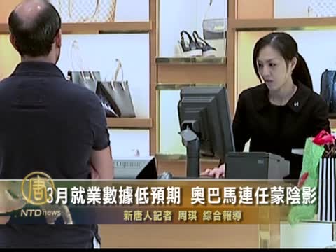 【新唐人2012年4月7日訊】美國勞工部6日公布,3月的非農就業人數新增了12萬人,遠低於市場預期。不過失業率降到了8.2%,是2009年1月以來的最低點。儘管如此,這些數據還是為奧巴馬競選連任蒙上了一層陰影。