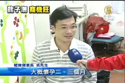 2012-04-22 21:34:35想趁龍年,拼個龍寶寶的夫妻,可要把握時間。醫師估算,媽媽最晚得在5月中旬懷孕,才能搶在明年黃曆年前,生下龍寶寶,距離受孕期限只剩20多天,因此近來婦產科求診的夫妻,也暴增3倍。
