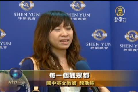 【新唐人亞太台2012年4月7日訊】從事教育工作的國中英文教師魏劭純,在周末假日,觀賞了神韻藝術團在台中中山堂的演出,不但對於舞蹈與天幕的配合,感到讚嘆,更對神韻演出中的善良意涵,印象深刻。
