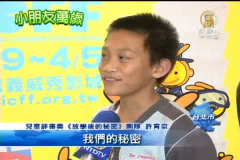 【新唐人亞太台2012年4月7日訊】兩年一度的國際兒童影展,今年總共有56個國家,730件作品參賽,其中,由洪伯豪執導的《畢業旅行》,探討道德對小孩的重要,獲得台灣獎,另外,由四位平均12歲的小導演,所拍攝的《放學後的秘密》,純真童趣的內容,獲得兒童評審的青睞。
