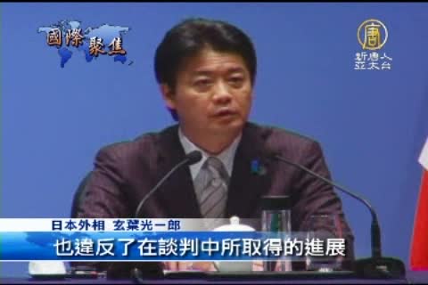 日本外相 玄葉光一郎:「如果北韓的導彈發射,或是他們稱為衛星發射的事情,確實發生了,將明顯違反聯合國決議,也違反了在談判中所取得的進展,因此我們強烈敦促朝鮮避免這種發射導彈的作法。」