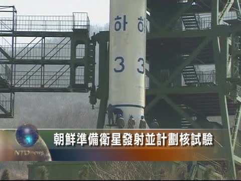 【新唐人2012年4月10日訊】朝鮮近日已經將一枚三級火箭安放位於一個新型、技術更先進的發射中心的發射臺上。朝鮮計劃最早於星期四發射其所稱的地球觀測衛星,但是美國和韓國認為,這次發射是為了進行彈道導彈試驗。