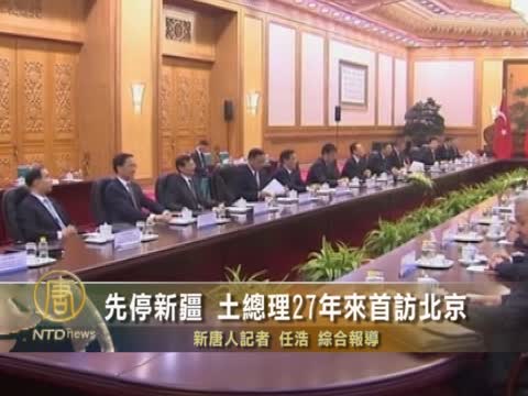 【新唐人2012年4月10日訊】星期一(4月9號),土耳其總理埃爾多安(Tayyip Erdogan),結束了對新疆烏魯木齊的短暫訪問,在北京與中共總理溫家寶舉行會談,成為過去27年來首位訪問中國大陸的土耳其總理。