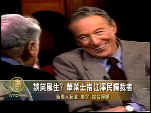 【新唐人2012年4月10日訊】叱吒美國新聞界60年,傳奇媒體人邁克•華萊士,4月7號走了,終年93歲。華萊士向來以犀利言詞、咄咄逼人的採訪風格著稱,而他處理極具爭議題材的功力,更是令人折服。華萊士也是目前唯一一位西方媒體人,同時接觸過前中共領導人鄧小平和江澤民。他在採訪江澤民時,毫不諱言指江是個獨裁者,並拿鴨子作比喻;而反觀江澤民,卻把那次的訪談拿來訓斥香港記者,聲稱他和華萊士「談笑風生」。