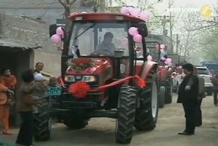【新唐人2012年4月12日訊】現在中國的有錢人,借寶馬租奔馳娶新娘,沒錢人硬著頭皮也要或借或租幾輛汽車,風風光光的接媳婦回家。在安徽農村,一名拖拉機手騎上高頭大「馬」,氣氣派派的就把心上人帶回了家。他騎的馬是甚麼呢?讓畫面告訴您答案。