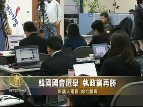【新唐人2012年4月12日訊】韓國中央選舉管理委員會星期四(12日)凌晨公布的國會選舉結果顯示,韓國新世界黨贏得過半議席,維持了執政黨的地位,同時也鞏固了該黨總統候選人樸槿惠的地位。