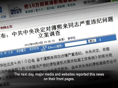 中共喉舌《新華社》4月10號一直等到深夜11點,才正式公布薄熙來涉嫌違紀被「雙停」的消息,11號,重慶和大陸各媒體及各大門戶網站,都以頭版或在顯著版面報導了「薄熙來案」,同時刊登《人民日報》評論,擁護所謂「中央的決定」。