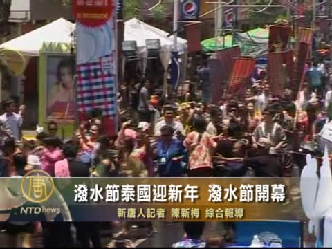 【新唐人2012年4月13日訊】星期五(4月13日),是泰國的新年,也是一年一度“潑水節”的開始。首都曼谷街頭,成了親善歡樂的海洋,當地人與遊客相互潑水,迎來新的一年。