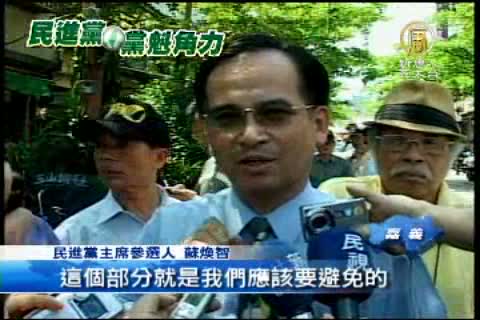 【新唐人亞太台2012年4月14日訊】民進黨黨魁改選登記結束,確定是5搶1,參選人蔡同榮、蘇煥智、蘇貞昌14日同場較勁,前後出席黨內立委李俊俋的服務處成立大會,針對許信良昨天公開表態挺蔡英文再戰2016,當然就是今天現場媒體關注的焦點問題。