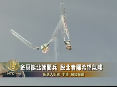 【新唐人2012年4月15日訊】星期天,就在北朝鮮當局為金日成100歲生日而舉行閱兵的同時,韓國脫北者和人權活動人士,釋放了10個目標北朝鮮的氣球,氣球上裝載著希望他們北方鄰居獲得自由的消息。