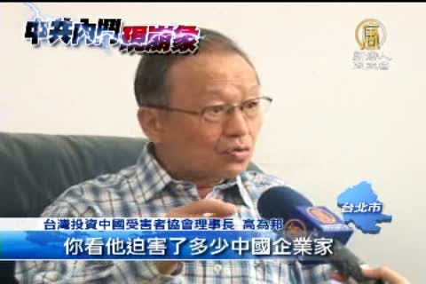 台灣投資中國受害者協會理事長 高為邦:「在一個專制的社會國家,一個地方的首長,就是一個地方的土黃地,薄熙來在重慶,就是重慶的土皇帝,你看他迫害了多少中國企業家,對不對,那些中國企業家他都以打黑、官商勾結,反正你有很多名義,通通把你關的關,虐待的虐待。連那個中國的企業家,它背後都有很多政治勢力,它都沒有辦法自保,我們台商怎麼自保」