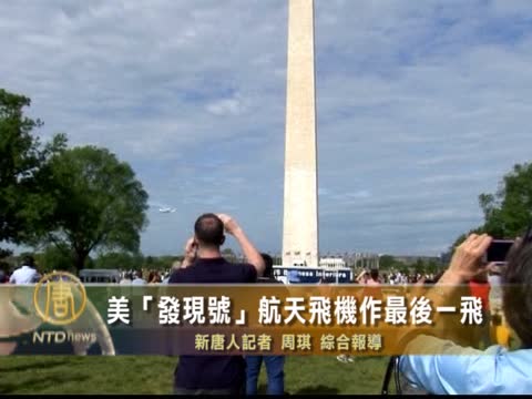 【新唐人2012年4月18日訊】4月17日,退役的美國「發現號」航天飛機最後一次在藍天飛翔。它從佛羅里達州的甘迺迪太空中心起飛,來到了它永久的棲息地----位於華盛頓的國家航天博物館。