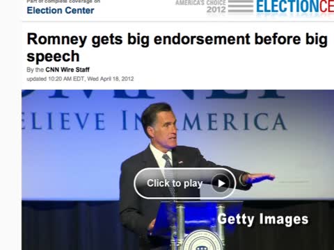 【新唐人2012年4月19日訊】美國共和黨總統參選人羅姆尼週三又得到了印第安納州州長米奇.丹尼爾斯的重量級支持。目前全國民調顯示,羅姆尼與對手奧巴馬總統支持率不相上下,可以想見,11月總統大選將是一場很激烈的角逐。