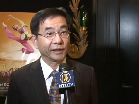 【新唐人2012年4月21日訊】包括駐芝加哥臺北經濟文化辦事處處長葛葆萱、商務組組長王振福、文化組組長陳幗珍、僑教中心主任陳永豐、副主任林垙舞在內的中華民囯駐芝官員共十人,19日晚觀看了在芝加哥歌劇院上演的神韻晚會首場演出。處長葛葆萱表示,這是他五年來第二次觀看神韻,印象深刻,而且神韻越演越好,讓他十分感動。