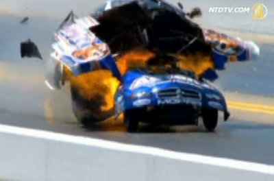 這是4月16號美國北卡羅來納州夏洛特(Charlotte, North Carolina)舉行的阻力賽車資格賽。一場意外的爆炸,讓哈根失去了參賽的機會。