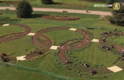 鮮花組成的花環花費了組織者五天時間種植,整個圖案跨度達50米。