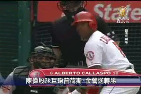 【新唐人亞太台2012年4月23日訊】來看到,台灣旅美投手陳偉殷今天(23號)第3度在大聯盟先發,雖然沒有奪勝,但終於突破6局魔咒,陳偉殷主投6.1局飆出5次三振,僅被敲出5安打,丟掉1分責失,投出本季第1場優質先發,尤其他3度對上強棒普侯斯,還賞給他2次三振,表現相當出色,最後巴爾的摩金鶯在延長賽中以3比2險勝洛杉磯天使,避免系列賽遭到橫掃。
